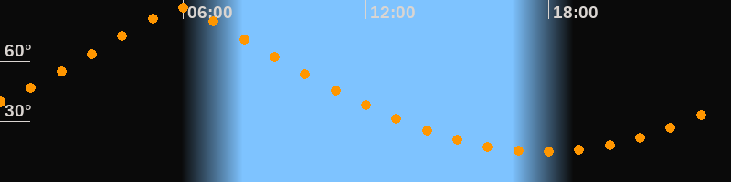 | Höchster Stand (Kulmination) | 05:54 Uhr (h = 86,4°) |