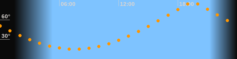| Höchster Stand (Kulmination) | 19:31 Uhr (h = 86,4°) |