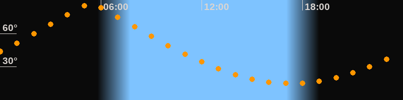 | Höchster Stand (Kulmination) | 05:22 Uhr (h = 86,4°) |