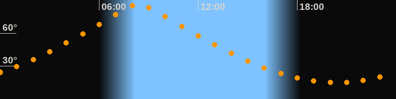 | Höchster Stand (Kulmination) | 08:23 Uhr (h = 86,4°) |