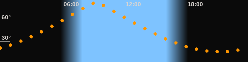 | Höchster Stand (Kulmination) | 09:16 Uhr (h = 86,4°) |