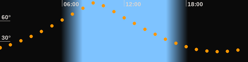 | Höchster Stand (Kulmination) | 09:12 Uhr (h = 86,4°) |