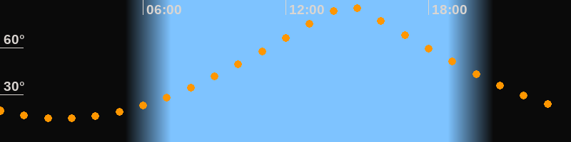 | Höchster Stand (Kulmination) | 14:36 Uhr (h = 86,4°) |