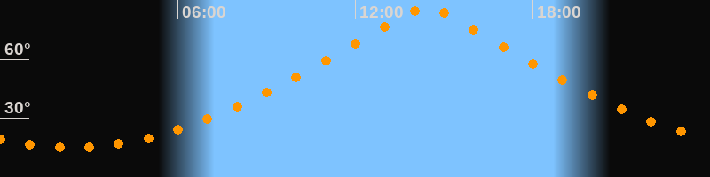 | Höchster Stand (Kulmination) | 14:24 Uhr (h = 86,4°) |