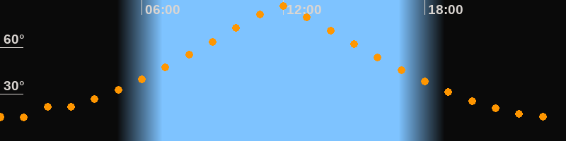 | Höchster Stand (Kulmination) | 11:54 Uhr (h = 86,4°) |