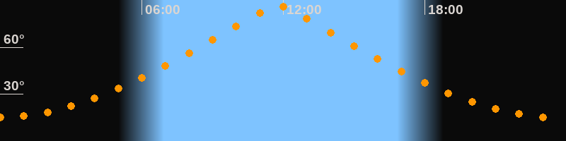 | Höchster Stand (Kulmination) | 11:46 Uhr (h = 86,4°) |