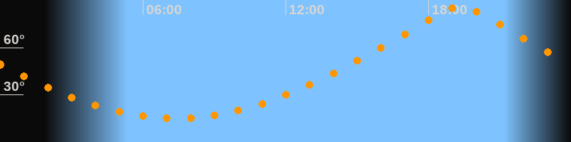 | Höchster Stand (Kulmination) | 19:20 Uhr (h = 86,4°) |