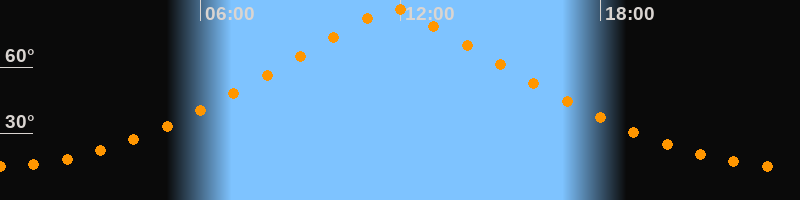| Höchster Stand (Kulmination) | 11:47 Uhr (h = 86,4°) |