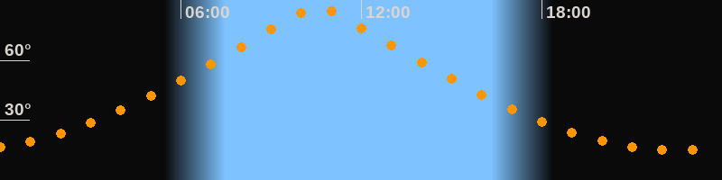 | Höchster Stand (Kulmination) | 10:32 Uhr (h = 86,4°) |