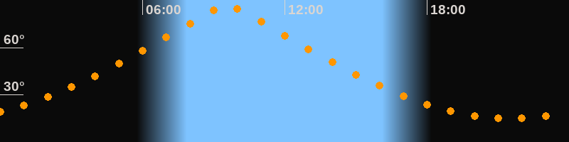 | Höchster Stand (Kulmination) | 09:33 Uhr (h = 86,4°) |