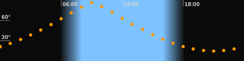 | Höchster Stand (Kulmination) | 09:02 Uhr (h = 86,4°) |