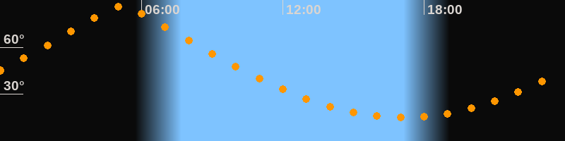 | Höchster Stand (Kulmination) | 05:10 Uhr (h = 86,4°) |