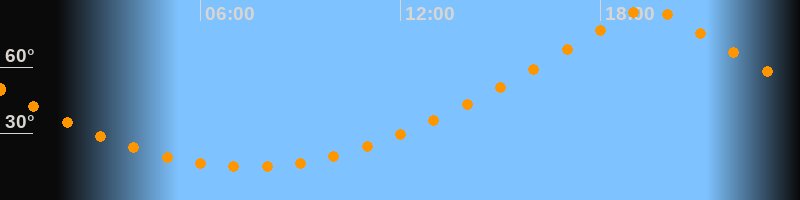 | Höchster Stand (Kulmination) | 19:25 Uhr (h = 86,4°) |