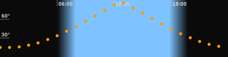 | Höchster Stand (Kulmination) | 12:44 Uhr (h = 86,4°) |