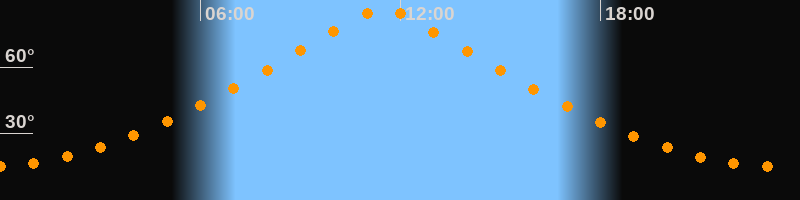 | Höchster Stand (Kulmination) | 11:28 Uhr (h = 86,4°) |