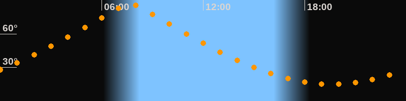 | Höchster Stand (Kulmination) | 07:40 Uhr (h = 86,4°) |