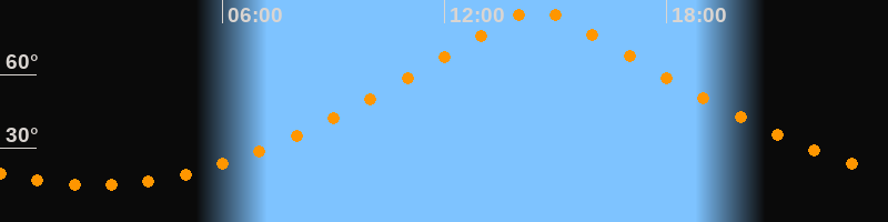 | Höchster Stand (Kulmination) | 14:31 Uhr (h = 86,4°) |
