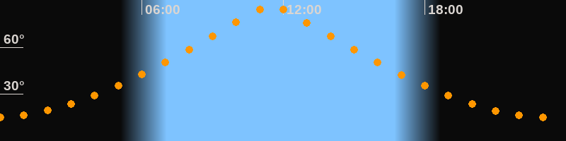 | Höchster Stand (Kulmination) | 11:29 Uhr (h = 86,4°) |