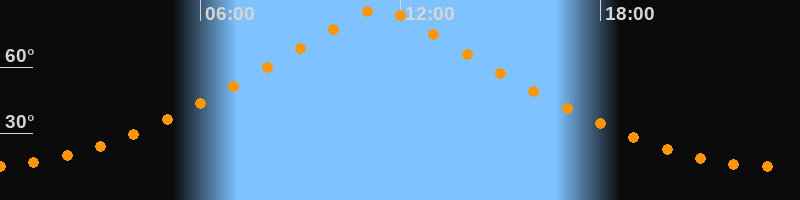 | Höchster Stand (Kulmination) | 11:21 Uhr (h = 86,4°) |