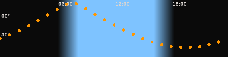 | Höchster Stand (Kulmination) | 07:33 Uhr (h = 86,4°) |