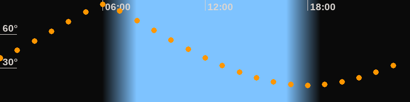 | Höchster Stand (Kulmination) | 06:03 Uhr (h = 86,4°) |