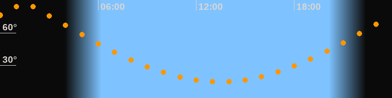 | Höchster Stand (Kulmination) | 01:25 Uhr (h = 86,4°) |