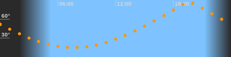 | Höchster Stand (Kulmination) | 19:39 Uhr (h = 86,4°) |