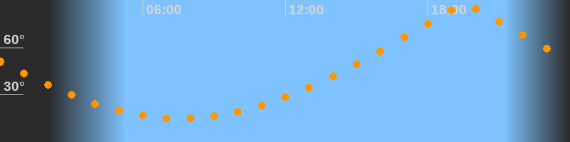 | Höchster Stand (Kulmination) | 19:35 Uhr (h = 86,4°) |
