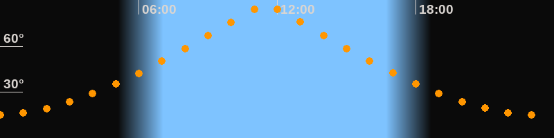| Höchster Stand (Kulmination) | 11:30 Uhr (h = 86,4°) |