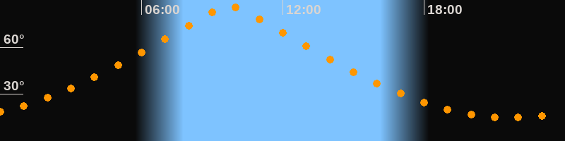 | Höchster Stand (Kulmination) | 09:44 Uhr (h = 86,4°) |