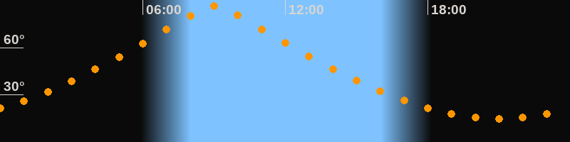 | Höchster Stand (Kulmination) | 09:01 Uhr (h = 86,4°) |