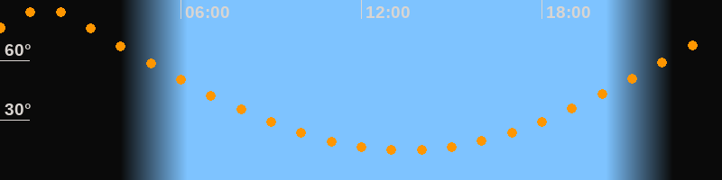 | Höchster Stand (Kulmination) | 01:25 Uhr (h = 86,4°) |