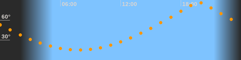 | Höchster Stand (Kulmination) | 19:47 Uhr (h = 86,4°) |