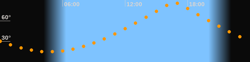| Höchster Stand (Kulmination) | 16:43 Uhr (h = 86,4°) |