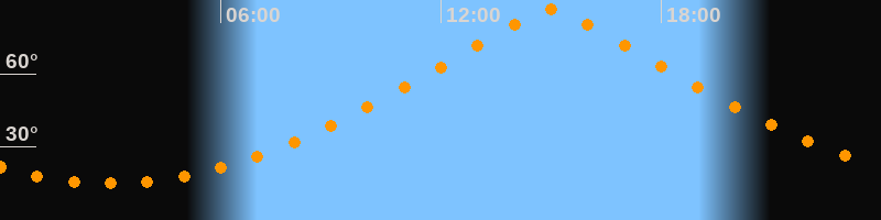 | Höchster Stand (Kulmination) | 15:00 Uhr (h = 86,4°) |