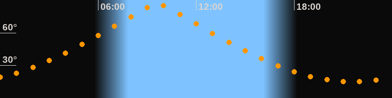 | Höchster Stand (Kulmination) | 09:37 Uhr (h = 86,4°) |