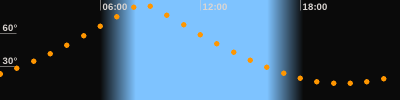| Höchster Stand (Kulmination) | 08:34 Uhr (h = 86,4°) |