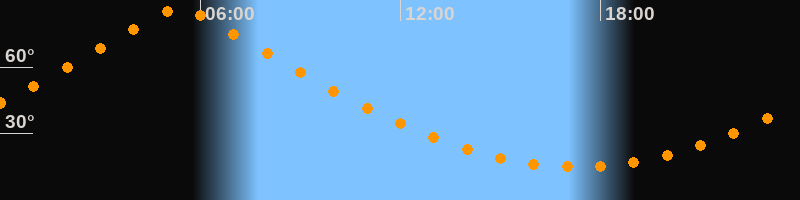 | Höchster Stand (Kulmination) | 05:21 Uhr (h = 86,4°) |