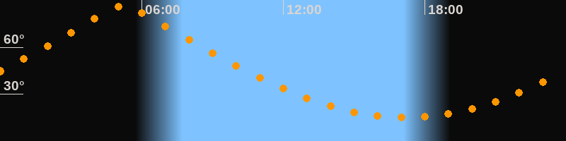 | Höchster Stand (Kulmination) | 05:13 Uhr (h = 86,4°) |