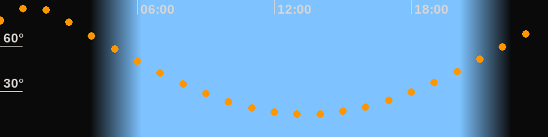 | Höchster Stand (Kulmination) | 01:22 Uhr (h = 86,4°) |