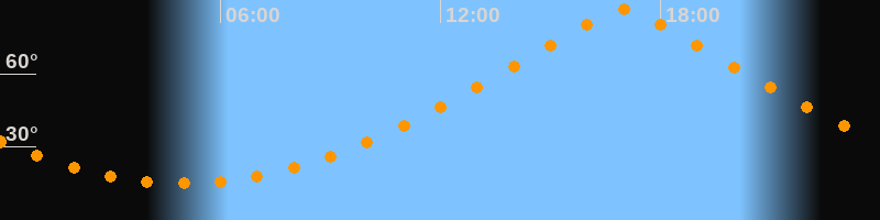 | Höchster Stand (Kulmination) | 16:59 Uhr (h = 86,4°) |