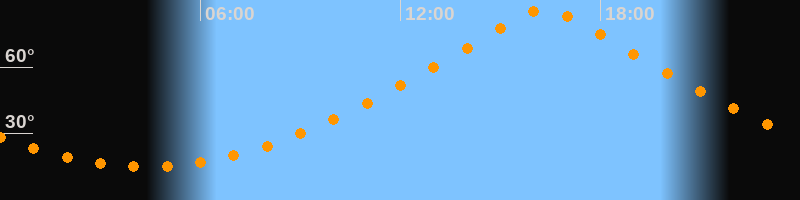 | Höchster Stand (Kulmination) | 16:20 Uhr (h = 86,4°) |