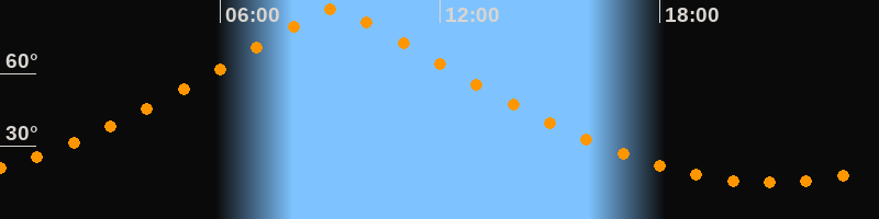 | Höchster Stand (Kulmination) | 09:06 Uhr (h = 86,4°) |