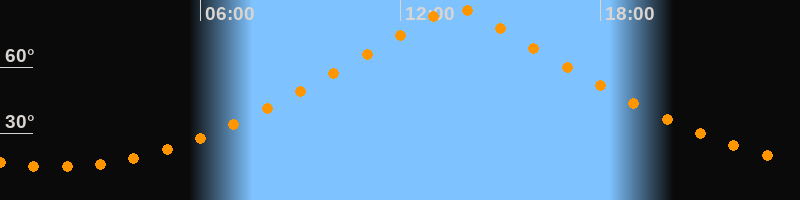 | Höchster Stand (Kulmination) | 13:40 Uhr (h = 86,4°) |