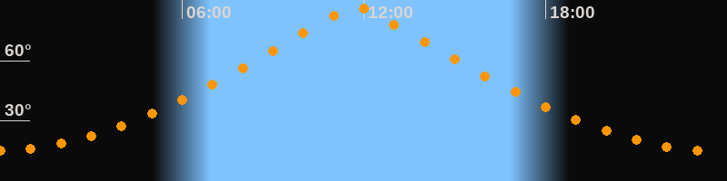 | Höchster Stand (Kulmination) | 11:45 Uhr (h = 86,4°) |