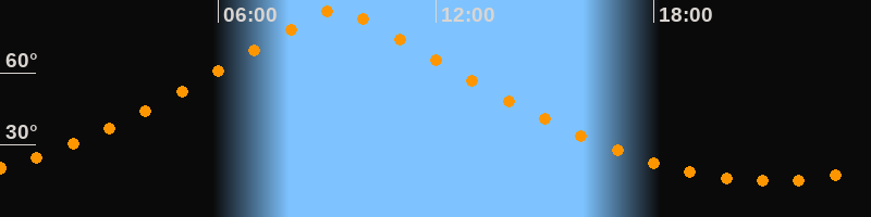 | Höchster Stand (Kulmination) | 09:15 Uhr (h = 86,4°) |