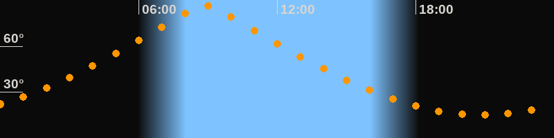 | Höchster Stand (Kulmination) | 08:52 Uhr (h = 86,4°) |