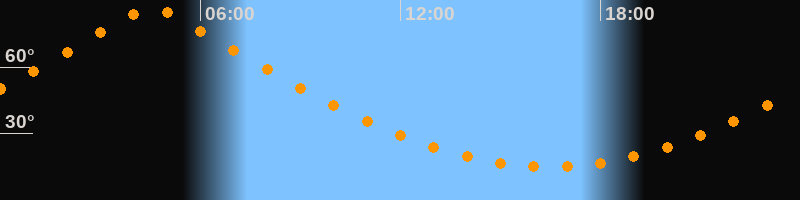 | Höchster Stand (Kulmination) | 04:32 Uhr (h = 86,4°) |