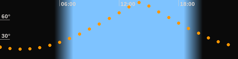 | Höchster Stand (Kulmination) | 14:04 Uhr (h = 86,4°) |
