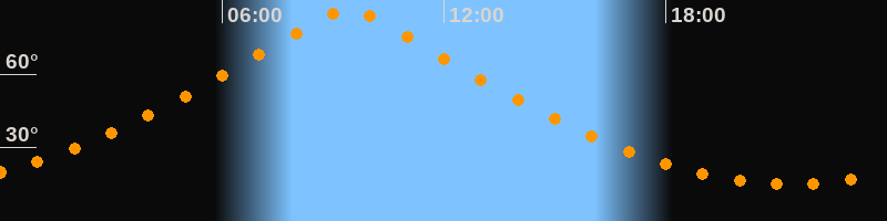 | Höchster Stand (Kulmination) | 09:24 Uhr (h = 86,4°) |